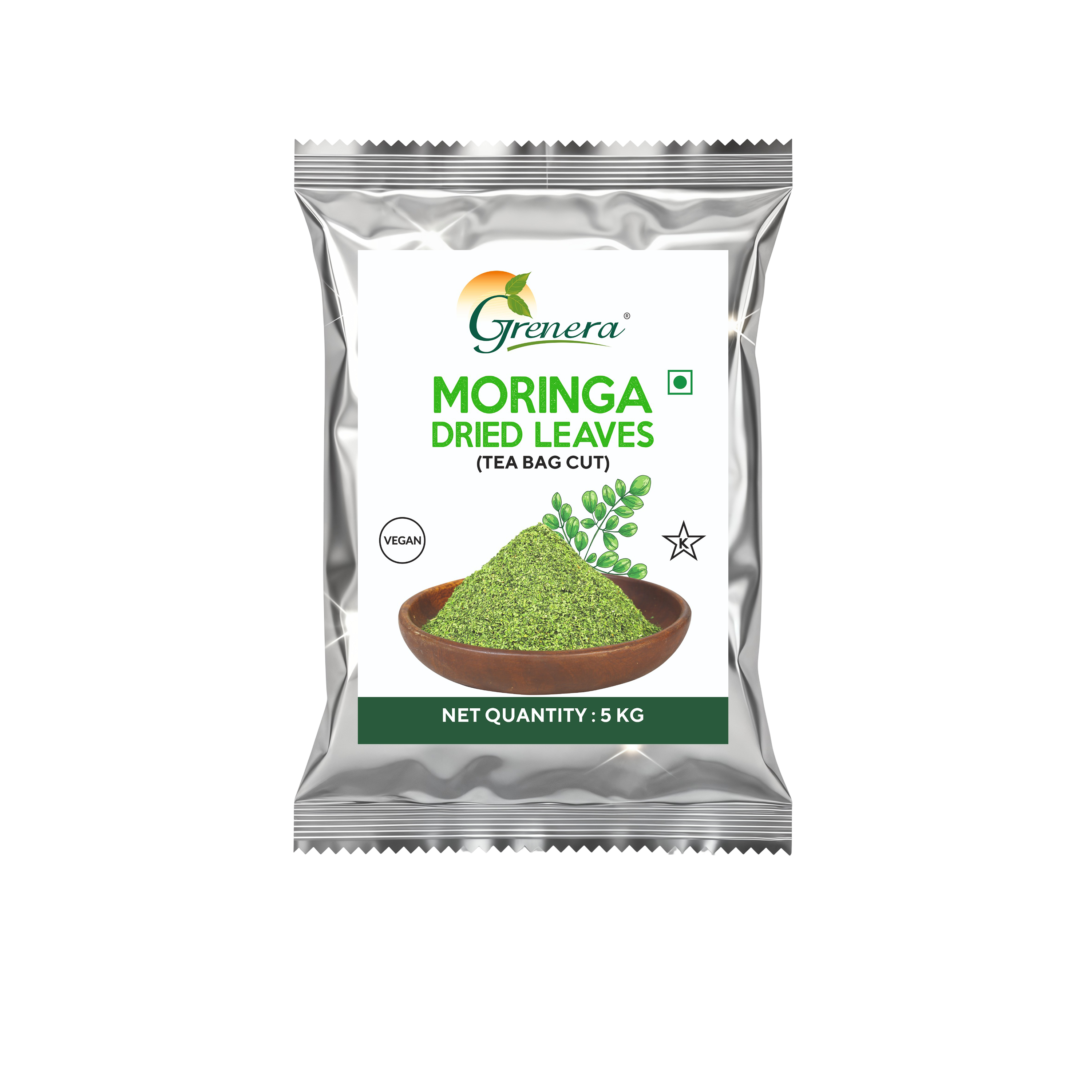 It is also known as Drumstick leaves, Shigru leaves, Sahijan leaves, Malunggay leaves, Kelor leaves, clarifier leaves and Benzolive leaves. To produce dried moringa leaves, fresh leaves are harvested from the moringa tree, then washed and dehydrated in a dehydrator using a low-temperature air-drying method. This ensures the quality and colour of the Moringa Dried Leaves.