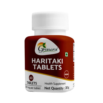 Grenera Organics Haritaki Tablets are made from high-quality Haritaki fruit, processed carefully to retain its natural goodness. These tablets help support digestion, detoxification, and metabolic balance without causing harsh effects on the stomach.