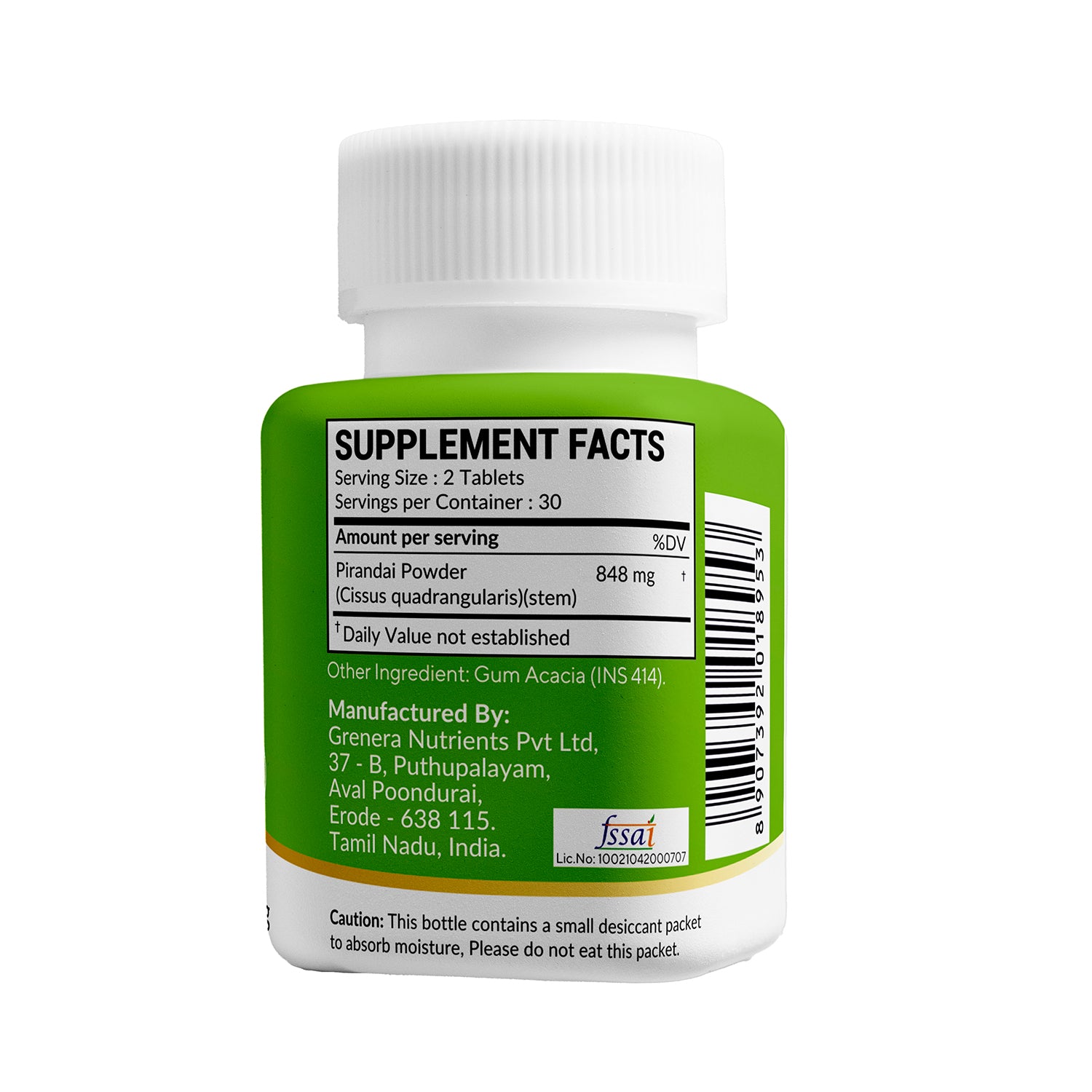 Grenera Organics Pirandai Tablets are made from high-quality Pirandai stem, carefully processed to retain its natural goodness. These tablets help support bone density, joint comfort, and digestive health, making them suitable for daily use by those looking to maintain strong, flexible bones and an active lifestyle.
