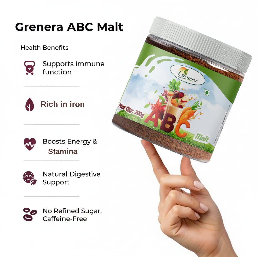 The natural power of fruits and vegetables in every scoop of ABC Malt – Apple, Beetroot & Carrot Health Drink Mix. Specially crafted for all ages, this wholesome blend combines the antioxidant-rich goodness of apple, the iron-packed benefits of beetroot, and the vitamin boost from carrot to support energy, immunity, and overall wellness.
