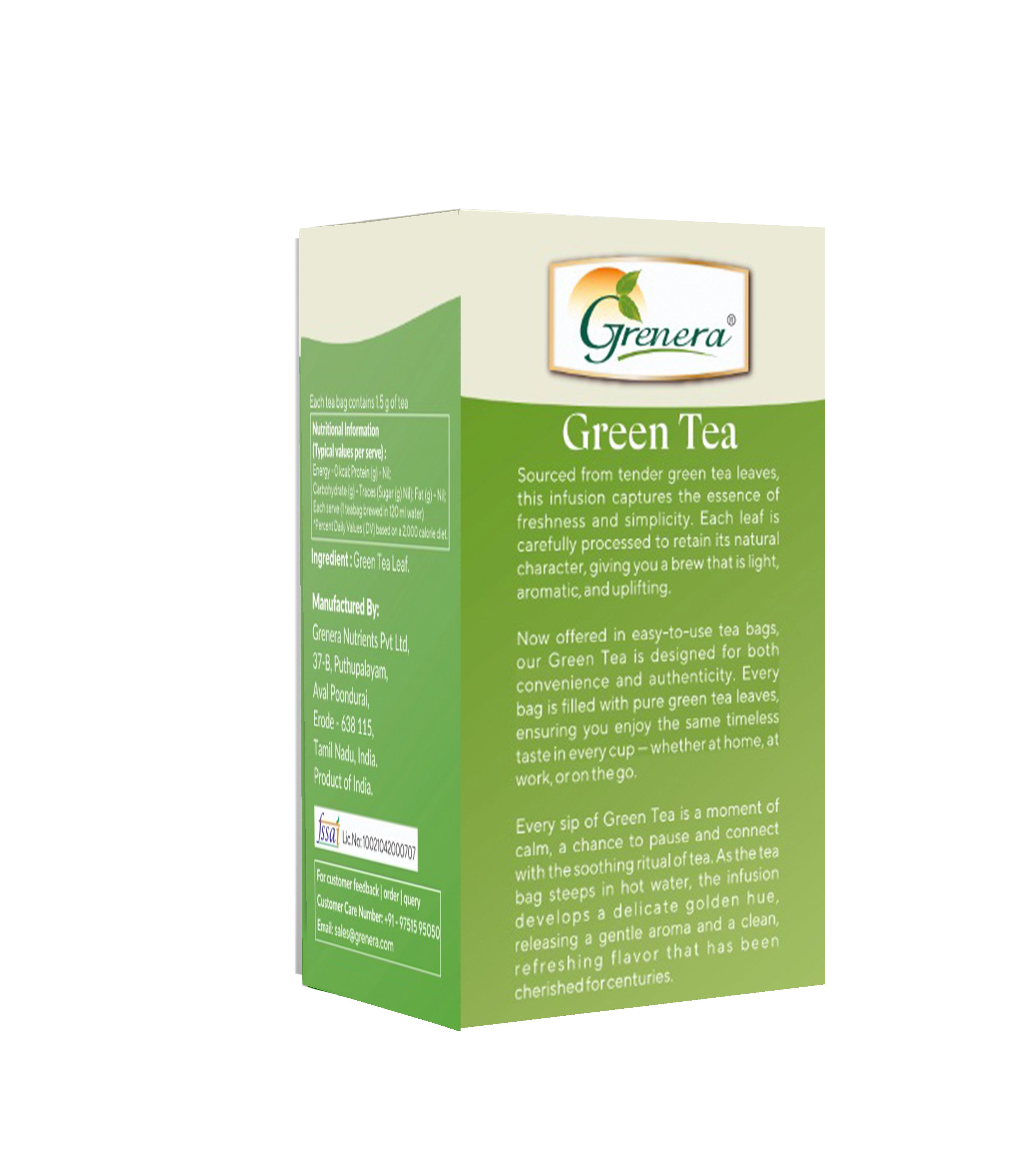Enjoy the clean, refreshing taste of green tea crafted for everyday routines. Grenera Organics Green Tea is made from carefully selected tea leaves, offering a light aroma and smooth flavor that fits perfectly into morning and evening moments.