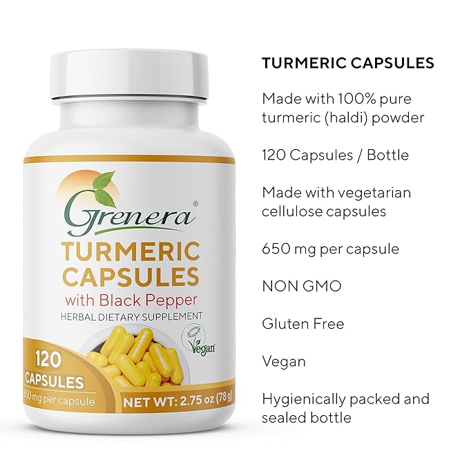 Turmeric capsules are made with high curcumin turmeric powder and black pepper powder. Black pepper powder is used for better absorption of nutrients